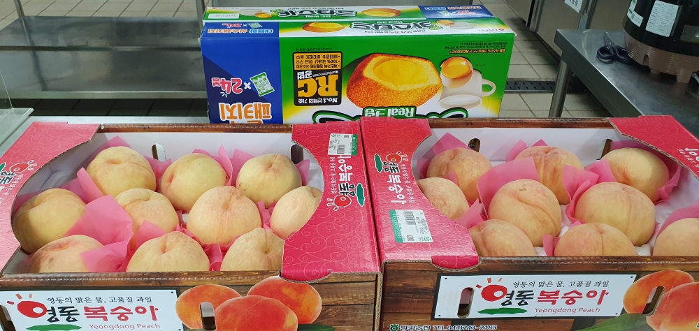 남님께서 복숭아 2상자와 과자를 후원해 주셨습니다.