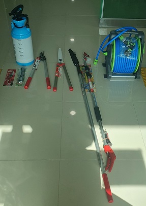 백두대간 수목원에서 전지가위 5개, 전지 톱, 분무기, 릴 홀스를 후원해 주셨습니다.