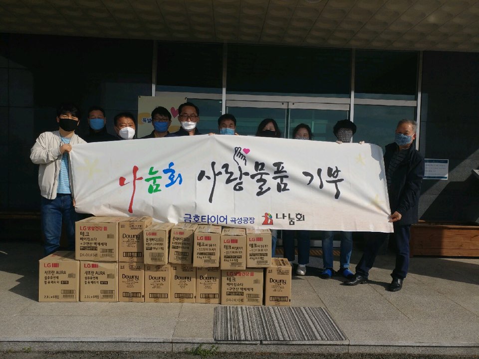 금호타이어 곡성공장 나눔회에서 세제 40개, 섬유유연제 12개, 바디워시 18개를 후원해주셨습니다.