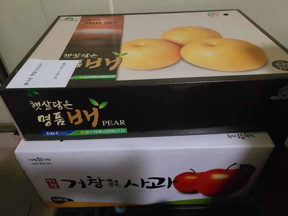 수연식품에서 사과 1박스, 배 1박스를 후원해주셨습니다.
