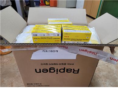 광주시청에서 코로나 자가진단키트 160개를 후원해주셨습니다.