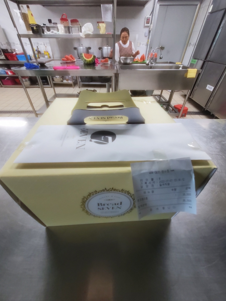 7월 7일 입주민 정*숙씨의 생일을 맞이하여 브레드세븐 일곡점에서 맛있는 생크림 케익을 후원해주셨습니다.