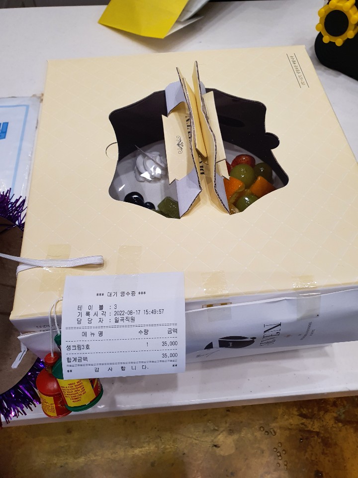 입주민 정*희씨의 생일을 맞이하여 브레드세븐에서 케익을 후원해주셨습니다.