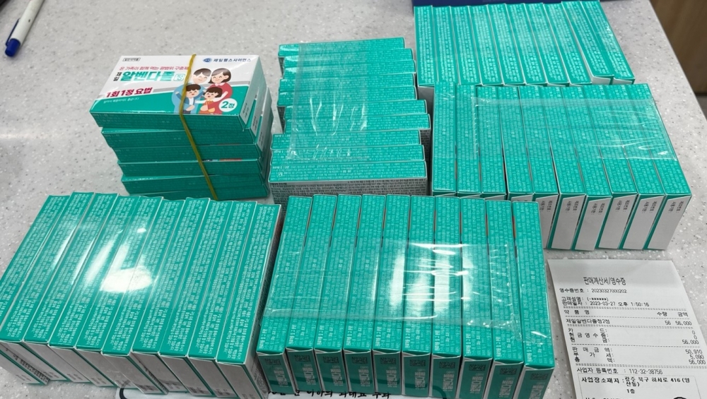 양산달약국에서 알벤다졸정 2정 52개를 후원해 주셨습니다.