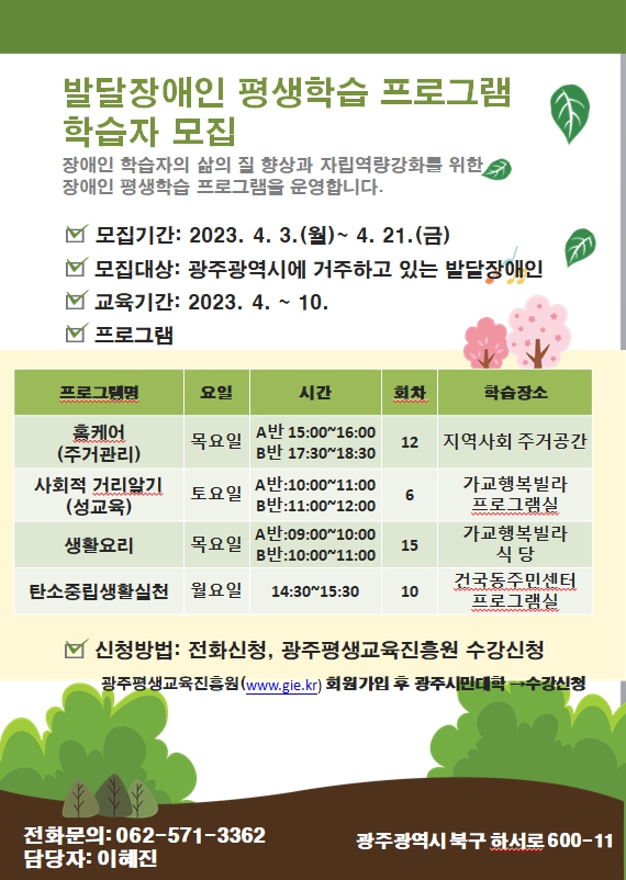 모집대상: 평생학습에 관심있는 지역사회 발달장애인