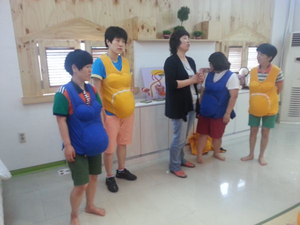 저희 하늘정원 이용자분들이 성교육을 받으며 임산부 체험도 하고 왔습니다.