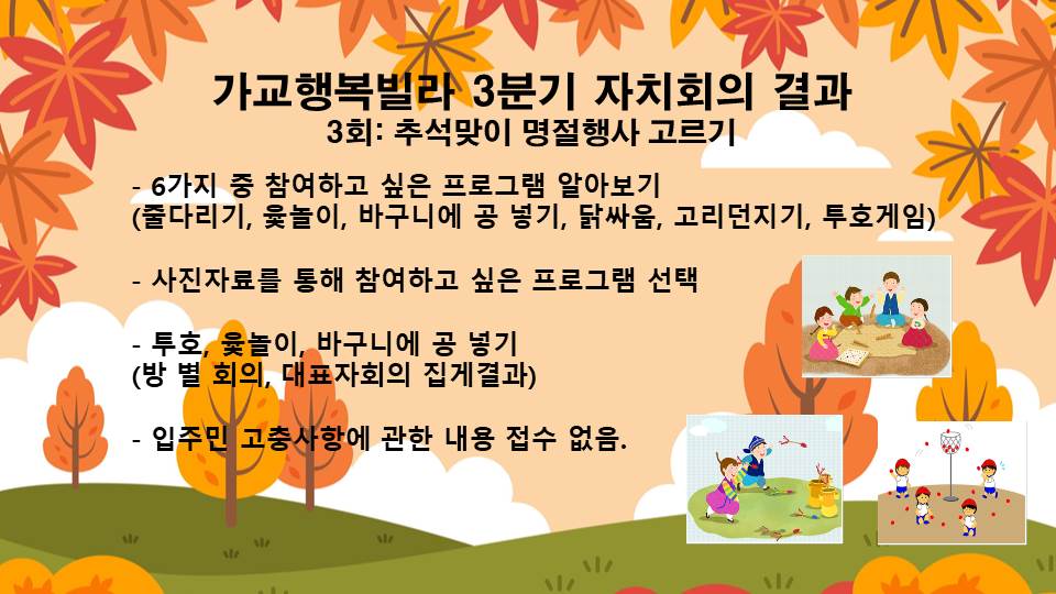 2025년 3분기 자치회의는 “추석맞이 명절행사 고르기” 입니다.