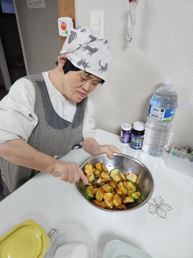 앞치마와 두건을 착용한 후