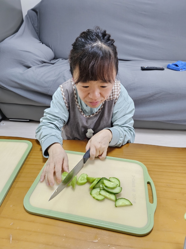 씻어 놓은 오이를 먹기 좋은 크기로 자른 후