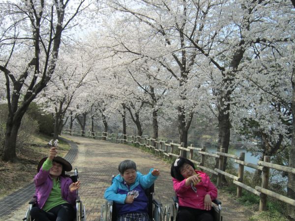 중증이용자 5분을 모시고 패밀리랜드로 벚꽃 구경 다녀왔어요. 걷기가 힘드신 이용자분들을 위하여 양지병원에서 휠체어를 대여하여 편하게 다녀왔습니다. 예쁜 벚꽃도 구경하고 더불어 맛있는 간식까지~~ 즐거운 시간이었습니다.^^