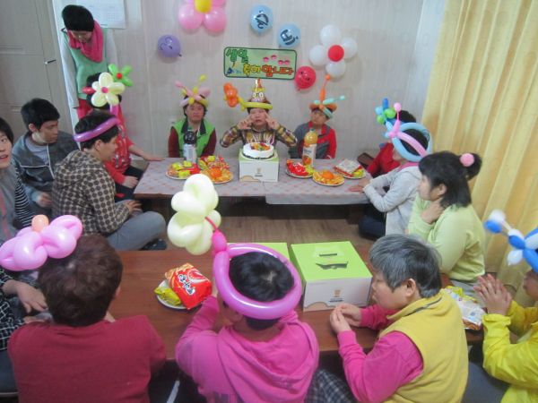 이용자분의 생일을 축하드리기 위하여 모두 모여 축하파티를 열었습니다.