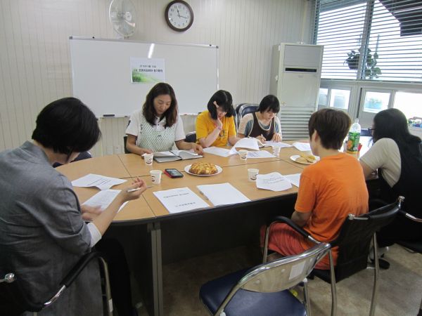 인권지킴이단 단원들이 한 자리에 모여 2분기 활동보고, 이용자 인권향상을 위한 사례지원 방안 토의,