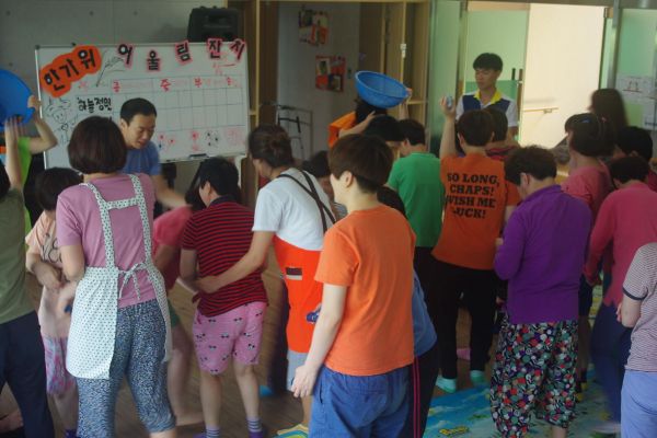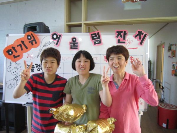 추석을 맞이하여 이용자분들과 함께 콩주머니 던지기, 줄다리기, 수건돌리기 등 재미있는 레크레이션 시간을 갖았습니다. ^^ 그리고 잔치가 끝난 후 추석선물 증정식이 있었습니다. 참여해주신 이용자분들과 선생님들 즐거우셨죠? 올 추석도 모두들 풍요로운 한가위 되시길 바랍니다.^^