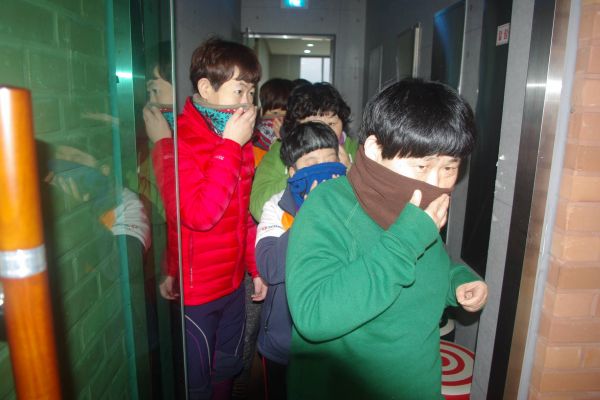 대피방송에 따라 입과 코를 가리고 몸을 숙인 채 신속하게 대피하였습니다.