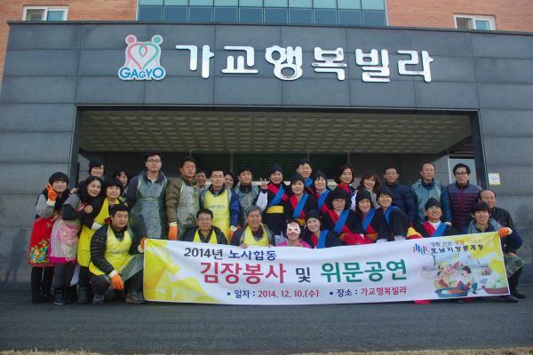 오늘은 가교행복빌라 김장담그는 날 입니다. 항상 직원들끼리 해오던 김장을 이번 해는 호남지방통계청 다사랑 봉사동호회에서 많은 도움을 주셨습니다. 뿐만 아니라 호남지방통계청 사내 동아리인 풍물패에서 신명나는 가락을 이용자분들에게 선사해주셨습니다. 다시 한 번 감사드리고 수고하셨습니다.^^