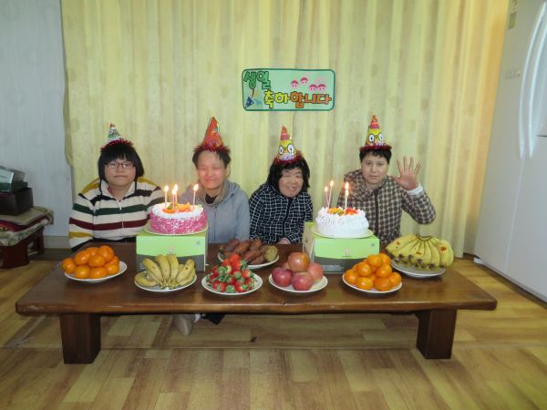 올 해 첫 생일파티를 가온누리 거실에서 이용자분들과 함께 축하해드렸습니다. 촛불에 불을 붙이고 생일축하 노래를 부른 후 준비한 간식을 맛있게 나누어 드시는 등 즐거운 시간을 보냈습니다. 다시 한 번 생일 축하드립니다~^^