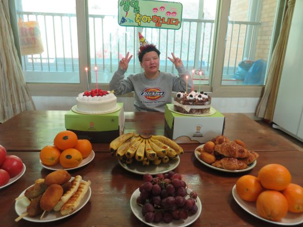 가온누리 생활실에서 생일파티를 열었습니다. 오늘의 주인공은 구00씨~ 이용자분들 모두 모여 축하하는 자리를 갖았습니다. 생일 축하드립니다.^^