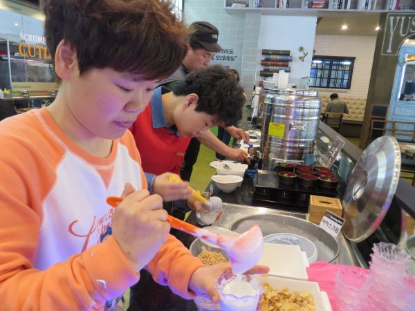 오늘은 이용자 세분을 모시고 영화관람을 다녀왔습니다.^^ 첨단 CGV에 도착하여 보고싶은 영화 초이스~! 이용자들의 선택을 받은 영화는 위험한 상견례2~ 영화관람 후 근처 돈까스 뷔폐집으로 이동~ 본인들이 직접 드시고 싶은 음식을 선택하여 맛있게 먹고 왔습니다.^^