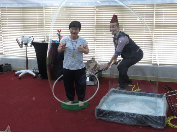 신나는 예술여행 공연신청이 선정되어 원내 강당에서 이용자분들과 함께 공연을 관람하였습니다. ”환상의 버블쇼와 모래가 들려주는 행복한 이야기를 주제로 한 공연은 이용자들이 직접 체험하고 즐길 수 있었던 공연이었습니다. 열심히 공연해주신 벌룬데코 선생님들 감사합니다~^^