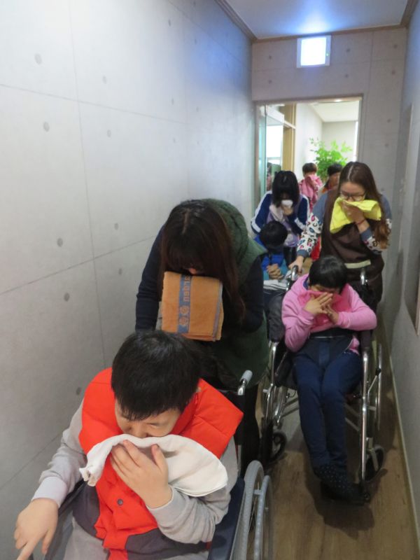 전 직원과 이용자분들과 함께 재난상황훈련을 하였습니다.