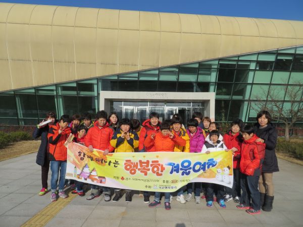 이용자분들과 함께 1박 2일 일정으로 겨울여행을 다녀왔습니다. 나주 중흥골드스파리조트에서 따뜻하고 재미있게 이용자들과 시간을 보낼 수 있었으며 돌아오는 길에 국립나주박물관에 들려 다양한 유물들을 관람을 하였습니다. 짧은 일정이였지만 즐거운 추억을 남길 수 있었던 뜻깊은 시간이었습니다.