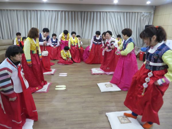 설날을 맞이하여 이용자분들과 함께 “설날 큰잔치” 행사를 개최하였습니다. 이용자분들 모두 한복을 곱게 차려입고 세배하는 방법도 배우고 민속놀이인 투호, 줄다리기 등 즐거운 레크레이션 시간을 갖았습니다. 2016년 한 해 모두 건강과 행복이 늘 곁에 함께하는 한 해가 되시길 기원합니다.^^