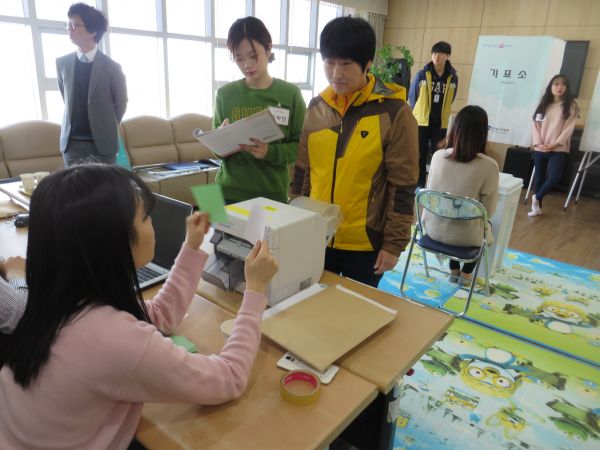 강당에 투표소와 같은 환경을 제공하여 투표절차 및 방법, 투표용지 및 유무효투표 안내에 대한 교육을 실시하였습니다.
