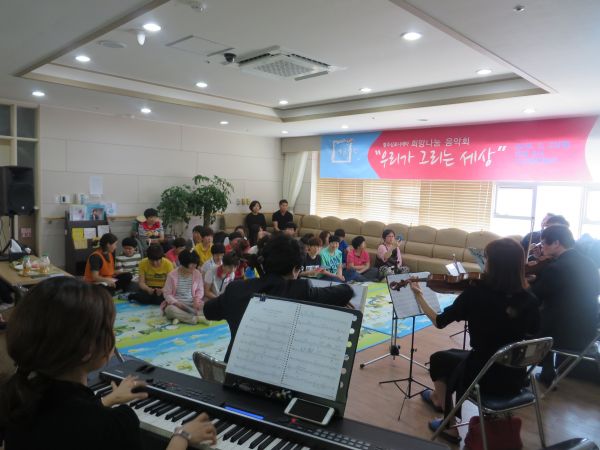 신나는예술여행 프로그램 선정으로 인하여 희망나눔 음악회 “우리가 그리는 세상” 이라는 주제로 광주신포니에타와 함께하는 시간을 갖았습니다. 클래식부터 대중가요까지~ 다양한 음악들을 감상하며 즐거운 시간을 갖았습니다.