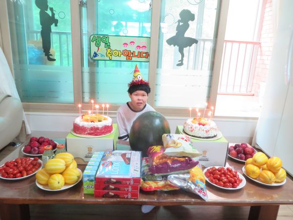 6월 29일 오후 2시~ 임00씨의 생일파티를 진행하였습니다. 베비에르에서 후원해준 케이크와 함께 각 종 다과를 준비하여 임00씨의 생일을 축하해주기 위하여 한 자리에 모인 이용자분들과 함께 나누었습니다.
