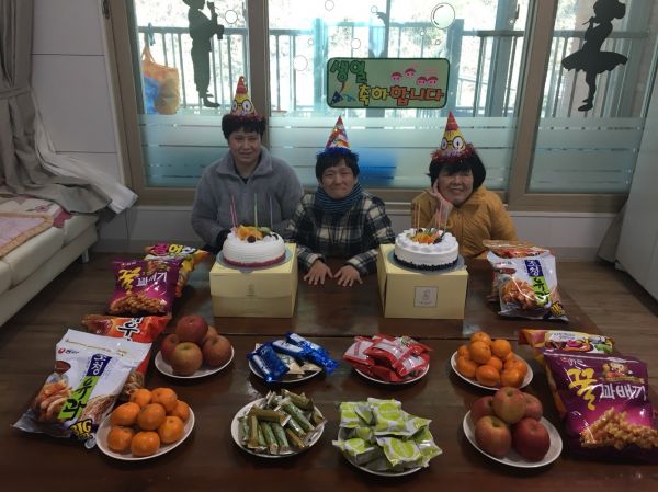 매 달 넷째주 수요일~ 이용자분들의 생일파티를 진행하고 있습니다. 1월달에 생일을 맞이한 이용자 세 분의 생일을 진심으로 축하드립니다.^^