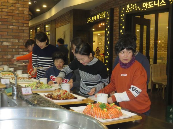송년회의 하이라이트 뭐니뭐니 해도 점심 만찬이 아닐 수 없겠죠? 다양한 음식을 골라먹는 재미~ 맛있어서 깜찍한 표정을 지은 이용인~^^ 모두모두 맛있게 잘 먹었습니다.