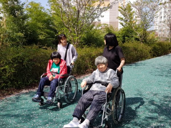 벚꽃이 몇일 사이에 환한 모습으로 활짝 핀 가운데 양산 호수공원으로~ 패밀리랜드로~ 이용인들과 함께 벚꽃놀이 다녀왔습니다. 바람에 날리는 벚꽃 이파리를 보면서 산책도 하고 맛있는 간식도 먹으여 즐겁게 보내고 왔습니다~