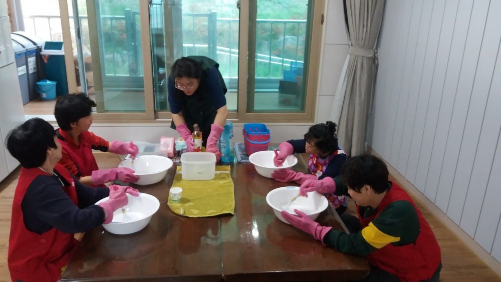 광주평생교육진흥원 지원 사업으로 클린마스터 프로그램을 진행 하고 있는데요 수건 접는 방법, 칫솔 이용하여 곰팡이제거, EM 발효액 만들기, 만능 물티슈 만들기 진행하였어요.