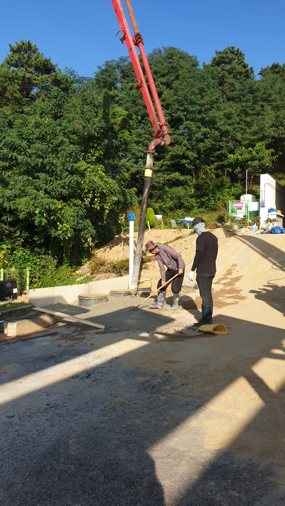 불편을 감수하고 생활한지 어언 2주.. 새 정화조가 자리를 잡고 시멘트를 부어 마무리 공사가 진행되었답니다.