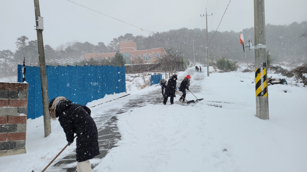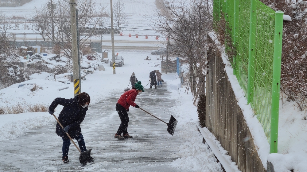 산 중턱에 위치한 빌라는 눈이 오면 빙판길이 되어 버립니다.