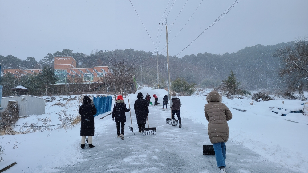 비상시를 대비하여 빌라 직원 모두 힘을 합쳐 길을 내었습니다.