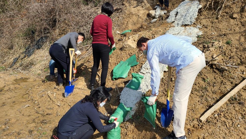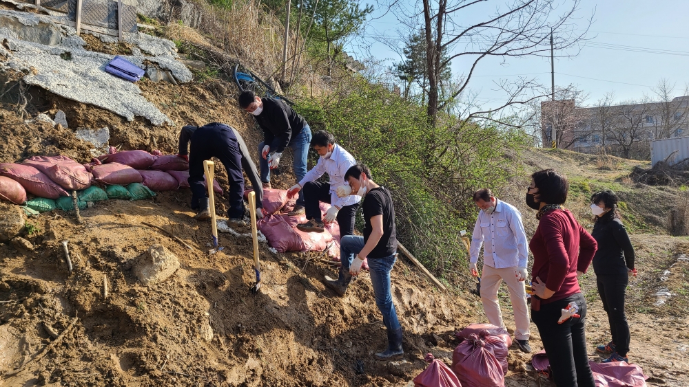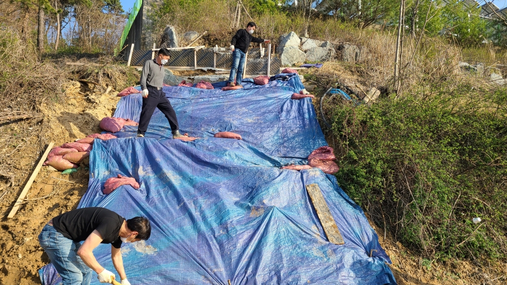 비가 올 때마다 흙이 더 내려가진 않을까 걱정했지만 자원봉사자 분들의 도움을 받아