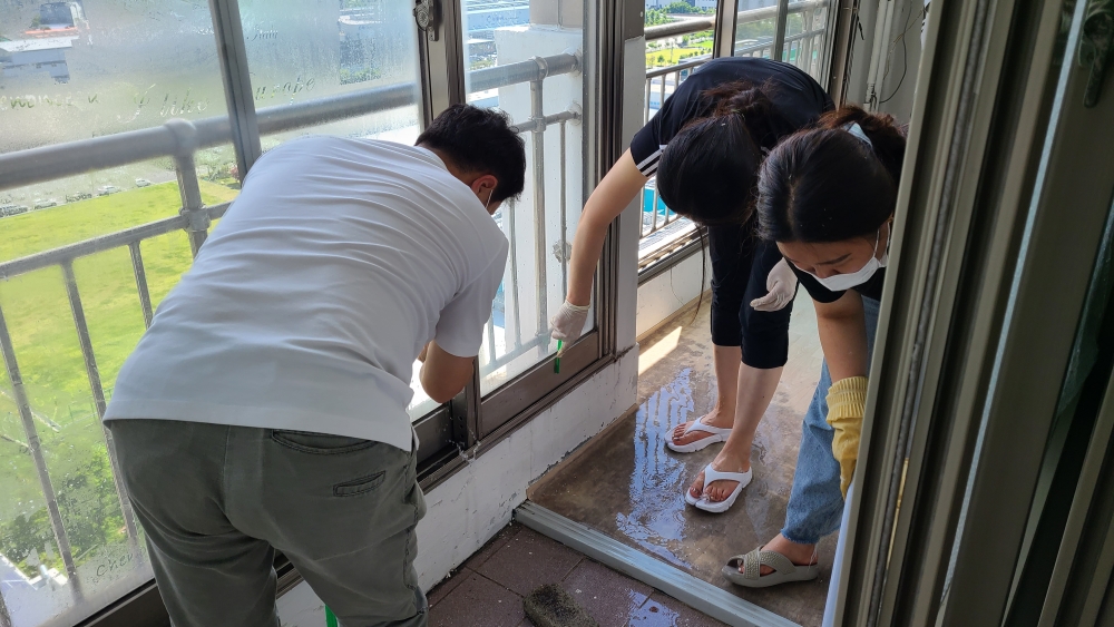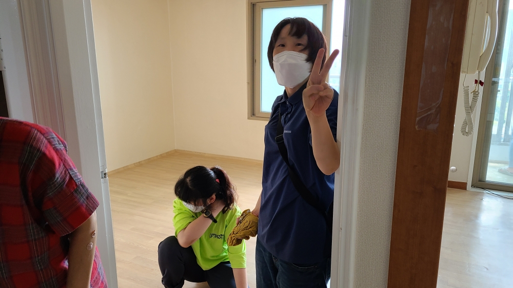 각자 살 방을 깨끗하게 치우자고 말씀드리니 걸레를 잡고 구석구석 닦는 식구들입니다.