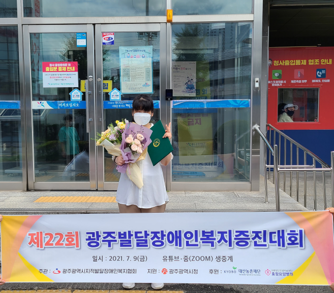 제 22회 광주발달장애인복지증진대회에서 광주광역시 북구청장님의 표창장을 받은 입주민이 계십니다.