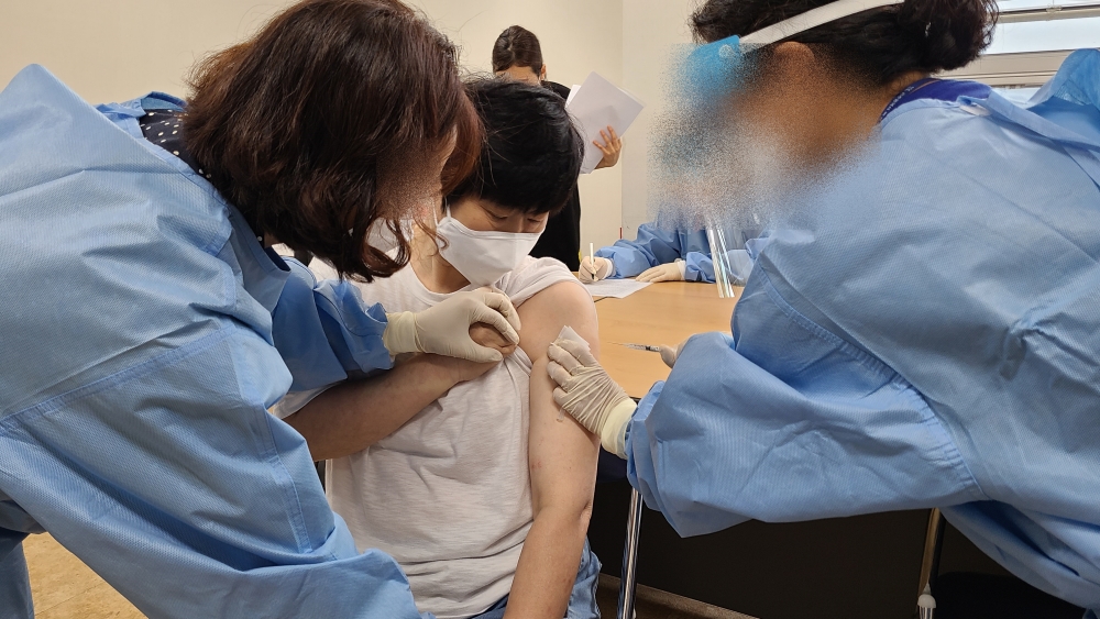 50세 이상 접종 대상자는 빌라 내에서 접종을 하고 50세 미만 입주민은 접종기관으로 가서 지원하였습니다.