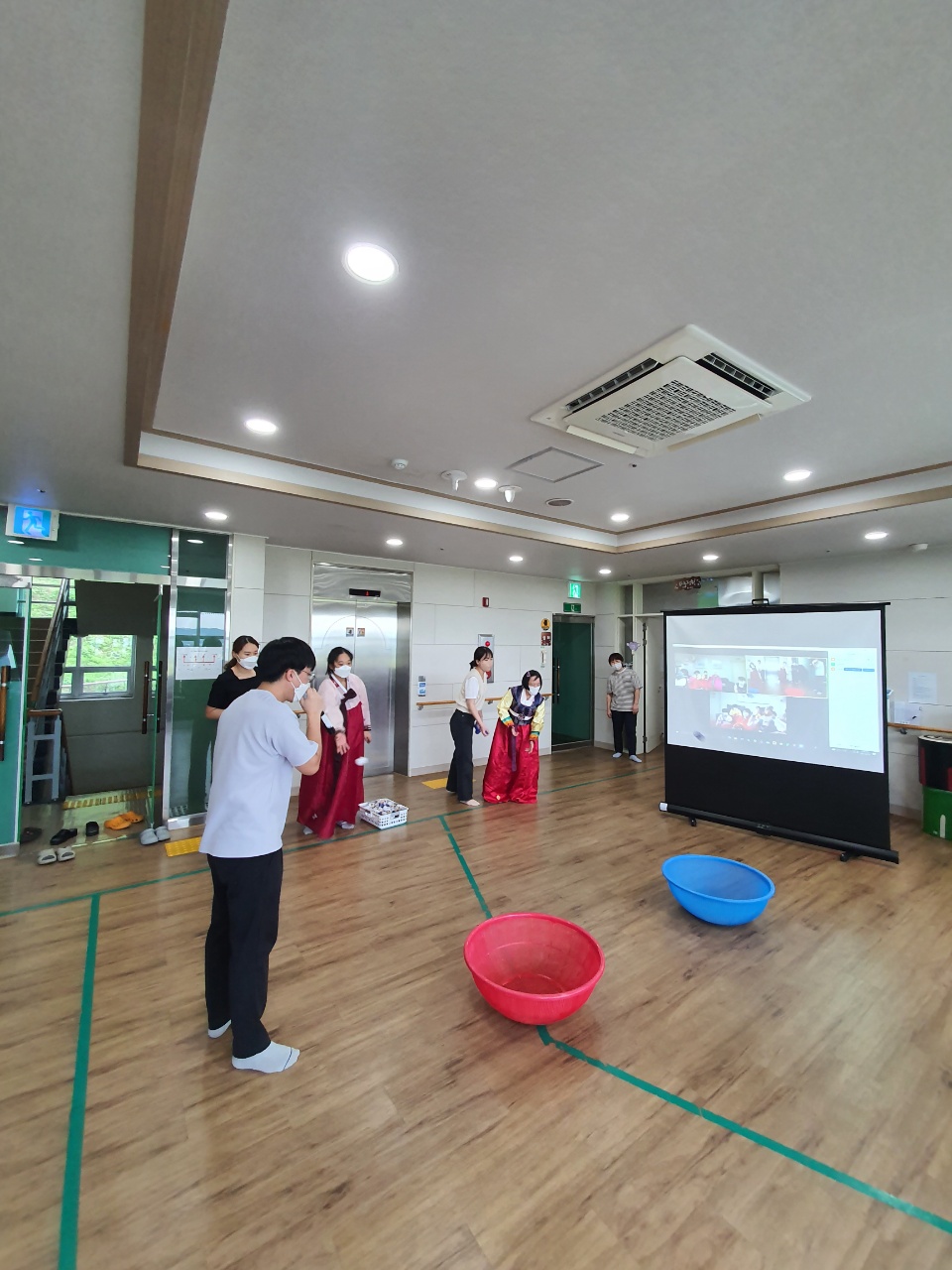 많은 전통놀이 중 콩주머니 던지기를 홈 대항전으로 진행하게 되었습니다.