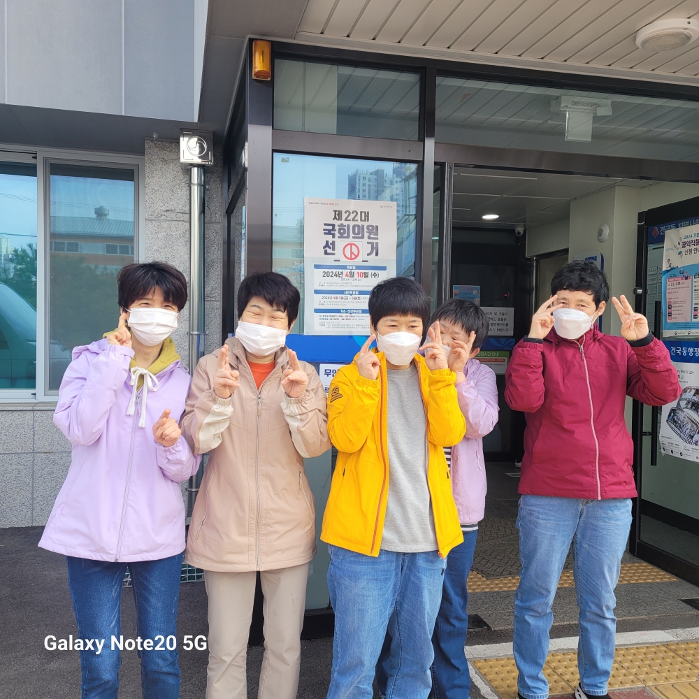 4월 5일과 6일 이틀에 걸쳐 건국동행정복지센터 2층 사전투표소에서 입주민들이 투표를 마쳤습니다. 연습한 대로 신분 확인 후 투표용지를 받아 기표소에서 투표 후 투표함에 용지를 넣기까지 수월하게 참여할 수 있었습니다. 소중한 한 표를 행사한 입주민들의 얼굴엔 뿌듯한 미소를 볼 수 있었습니다.^^