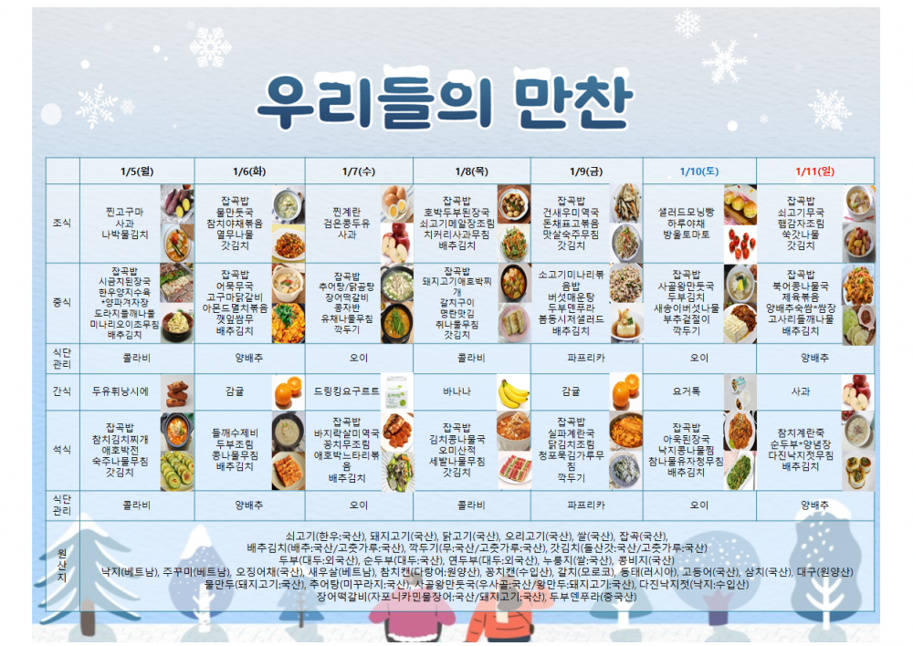 1월 2주 주간 식단표