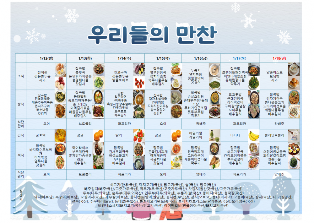 1월 3주 주간 식단표